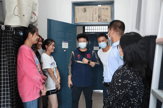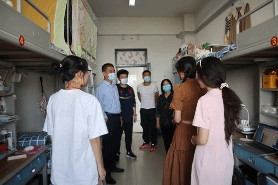 在走访的过程中,学院领导与同学们亲切交谈,细心询问同学们近日的学习生活情况以及在这期间所遇到的问题,听取同学们对于疫情防控下的教学模式、学生管理和后勤服务等方面的意见和建议,嘱咐同学们要提高安全意识,养成通风和消毒的好习惯。拜书记就疫情防控、宿舍环境、课余活动与学生进行交流,鼓励同学们在课余时间加强体育锻炼,提高自身免疫力。赵院长叮嘱同学们要遵守学校疫情防控相关规定,做好个人健康情况检测与个人防护,有困难及时和学院及辅导员老师反映,学院永远是大家最坚实的后盾。