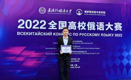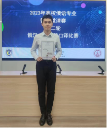 俄语专业2019级李东泰同学荣获本科生组决赛二等奖的好成绩。