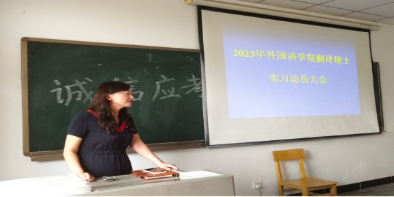 2022级翻译硕士实习动员大会在致远楼311教室如期召开。学院党总支书记朱海燕、副院长胡笑瑛、研究生辅导员王炜晨、王瑞以及2022级全体翻译硕士参会。会议由胡笑瑛副院长主持。