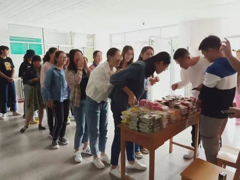 在学生办公室主任郑轶老师的张罗下,美味的月饼早早地摆在七号楼大厅的小桌子上。鲜花、鲜果馅的月饼甜,但更甜是拿到月饼的同学们脸上的笑容。在七号楼大厅里,外院同学们井然有序地排队,签字,领取月饼,接过月饼。不仅是月饼,更是一份独属于外院学子的关心和爱。