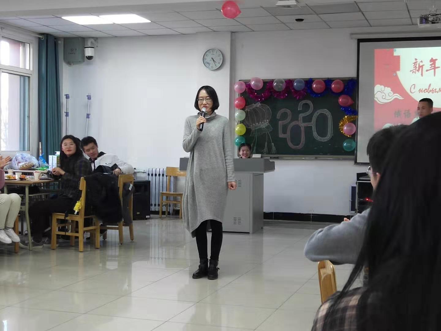 副院长马菊玲、俄语专业全体师生欢聚一堂,共同迎接新年的到来。
