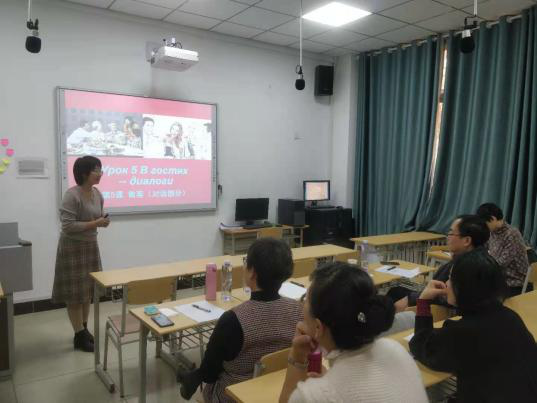 选拔指导赛”。本次活动邀请郭鸿雁教授、王岩森教授、赵智宏教授以及马菊玲副院长作评委, 经过学院系部课程组、教研室层层选拔脱颖而出的吴蓉、王奕文和马雅琼三位老师分别代表教授组、副教授组以及讲师组进行了丰富的课堂展示。吴蓉老师设计了多样化的学习任务,使学生能在输入和输出的过程中潜移默化地掌握故事发展主线。王奕文老师以人物塑造为切入点,紧密结合当下热点,将多模态融入课堂。马雅琼老师的俄语教学将语言和文化紧密结合,层层递进,促进了学生知识、能力和思想的全方位发展。