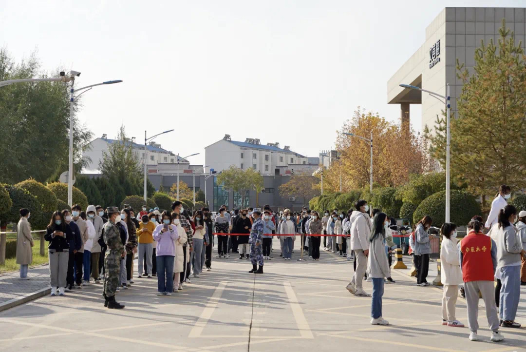 此次核酸检测由宁夏回族自治区人民医院负责,2018级师生于金凤校区、2019级和2020级师生于文萃校区、2021级师生于贺兰山校区分别分组进行采样。根据防疫要求,现场待采的每位同学均佩戴好口罩,保持一米的防护距离,尽量减少人员之间的交流,以分批、分组的方式进行错峰检测,避免过多人员聚集。在相关工作人员的指导下,同学们按照要求积极配合,十人一组,依次排队测量体温,出示自己的健康融合码,在核对完个人信息后,有条不紊地等待医护人员通过咽拭子方式采集样本。检测完毕的同学,按照指示由东侧返回宿舍,按单向不循环、不交叉路线,随检随离,不在检测场地逗留。