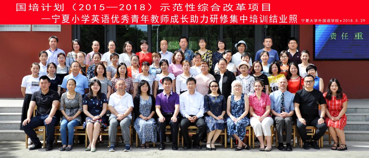 403多功能厅举行,标志着历时三年(2015.11.22-2018.6.2)的宁夏小学英语教师研修项目的集中培训工作圆满结束。教育厅教师工作处处长张鲁生,项目思政负责人、鸭奈飞