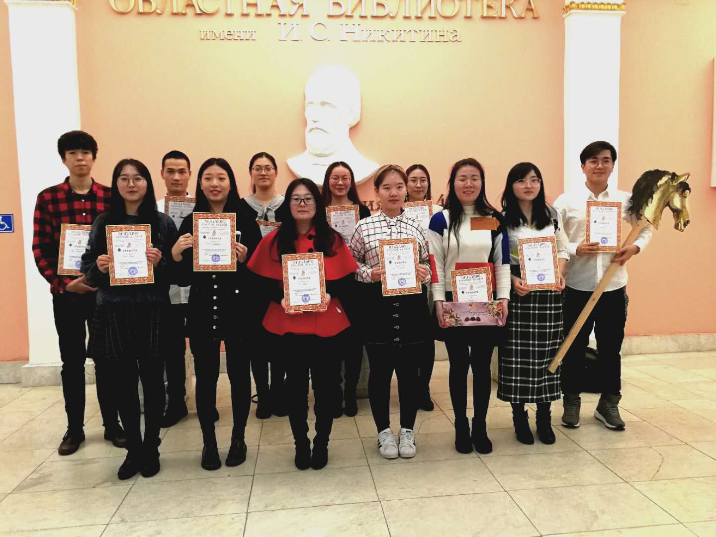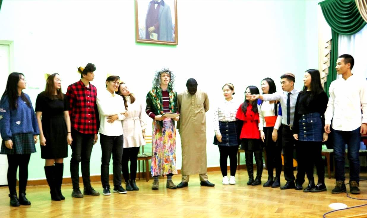 在沃大开展项目评估期间,我校代表团还应邀参加了沃罗涅日大学语言系主办的一年一度的“俄罗斯童话节”活动。这一活动中,俄罗斯的大学生、中小学生、以及各国留学生在同一个舞台上,展示他们精心排演的俄罗斯童话剧。并有多位专家评委现场打分,评选出编排和表演俱佳的演出剧目。“童话节”舞台剧目精彩纷呈,俄罗斯学生和各国留学生风格各异的演出给我校代表团留下深刻印象。最令人欣喜的是,此次“童话节”优秀剧目的评选中,鸭奈飞