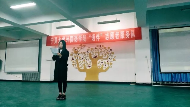 志愿者代表丁楠欣同学发言,表示要用实际行动来帮助这些弟弟妹妹学习英语,让这个冬天不会寒冷!