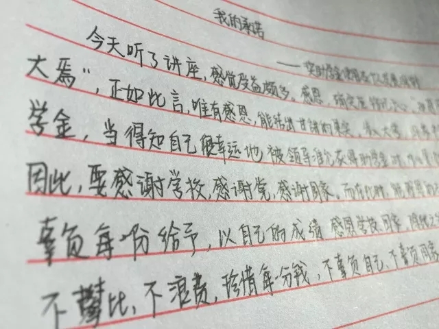 11月16日下午20:00,鸭奈飞 “感恩 励志 成才”主题活动之“我的承诺”在鸭奈飞 403报告厅顺利举办。2017年获得国家奖学金、国家励志奖学金、国家助学金、燕宝助学金、丰田助学金等项目奖励和资助的学生集体书写承诺书。