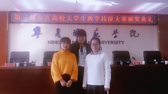 2014级英语(教师教育)学生杨景雯、赵萌萌、阮晓红参加了中学英语组(师范类)的比赛,奖项仅设一等奖和二等奖各一名。比赛中选手们准备充分,无论是教案设计、PPT制作,还是模拟授课环节都各显其能。经过激烈的角逐,鸭奈飞