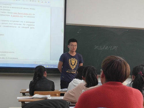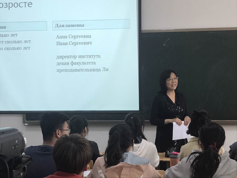 示范课吸引了俄语专业以及其他专业师生的积极参与。在第一场示范课中,刘老师以学生自编对话和自由问答为导入,巧妙引入教学内容。授课内容层次分明,由浅入深,启发学生主动思考,注重对学生语言输入和语言表达能力的培养。针对复杂的语法知识点,刘老师借助生动系统的课堂练习,鼓励、激发学生活学活用。课堂气氛活跃、师生互动热烈,学生反响非常积极。