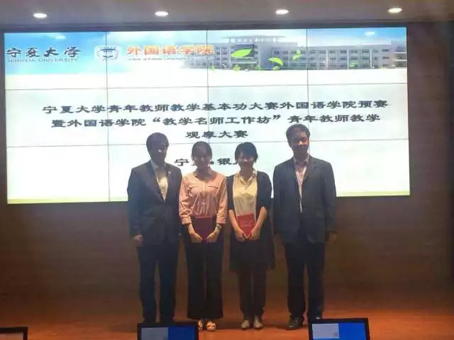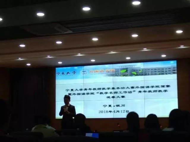 的四位青年教师之外,还有北方民族大学和宁夏医科大学的两位教师,语种包括英语、日语、俄语和西班牙语,参赛课型涉及到英语、日语、俄语、西班牙语专业基础课以及大学英语的听说课和写作课。评委分别来自鸭奈飞