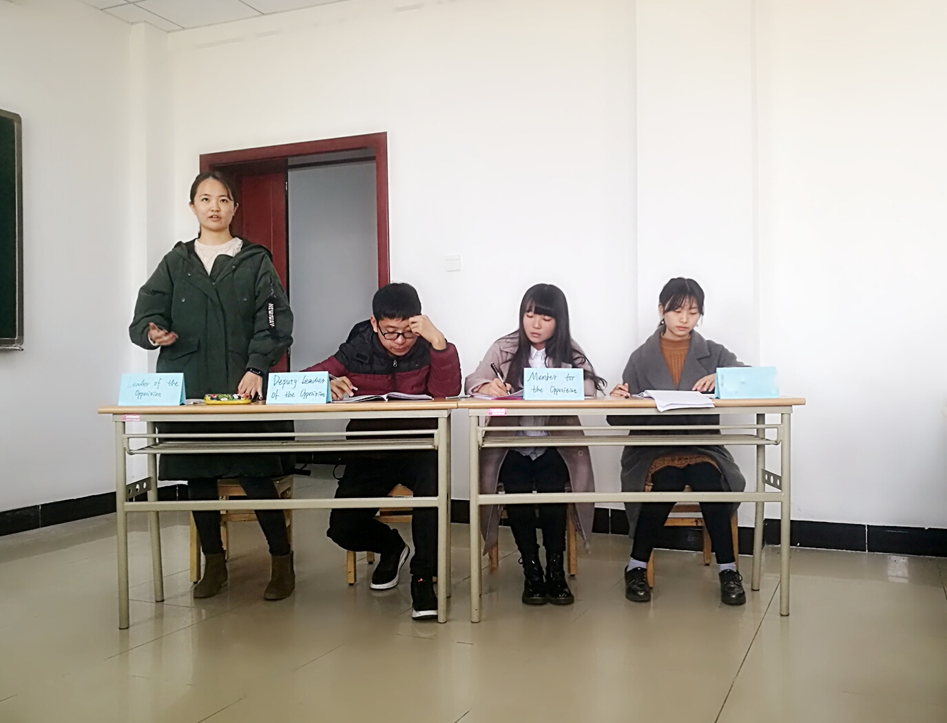 此次英语辩论赛的辩题为“This house believes having a job is more important than further education after graduation”(大学生毕业之后是应该踏入职场还是继续深造)。本次比赛采用英国“BP Debate”辩论方式。赛场上,双方辩手首先进行了简单的自我介绍,随后申明己方观点。辩论过程中,双方辩手唇枪舌战,思维交锋,不仅引经据典,而且联系学习生活,据理力争,以强大的气场压制对手,让观众们享受了一场关于英语和逻辑的盛宴。比赛进行地异常激烈,整个赛程高潮不断,观众反应热烈,掌声此起彼伏。