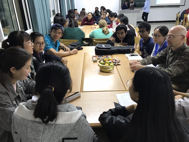 外教,他们是Dale,Sarah Bet, Bob and Karen Cheah前来指导,公外部教师和UTALK协会学生协助,来自各个学院的80余名学生参加了此次活动。