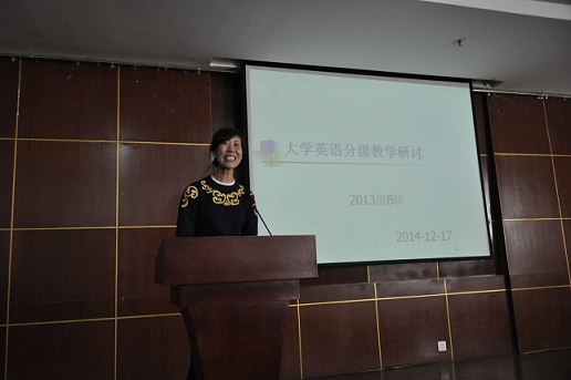 最后,教务处副处长任磊对奋斗在一线的“最可爱的大学英语教师”表示了崇高的敬意,肯定了教师们的辛勤付出,分级教学的确在教学管理模式和多媒体教室配备上提出了更高的要求,教务处会向学校进一步反映问题,尤其是教师课间跑校区的问题,尽力做好服务工作。郭鸿雁副院长肯定了教师认真教学和积极寻求教学办法的工作态度,也提出了具体要求,希望公外部的教师们能够克服新的教学改革带来的种种困难,一切为了学生、为了提高我校大学英语四级过级率和考研率,继续努力。