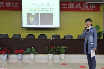 学生会学习部举办了以“世界地球日”为主题的英语角活动。旨在唤起大家爱护地球、保护家园的意识,促进资源开发与环境保护协调发展。外国语学院团委书记王朝老师、外籍教师Miss Anna、Miss Chelsea、Miss Johnson和2014级全体同学参加了本次英语角。