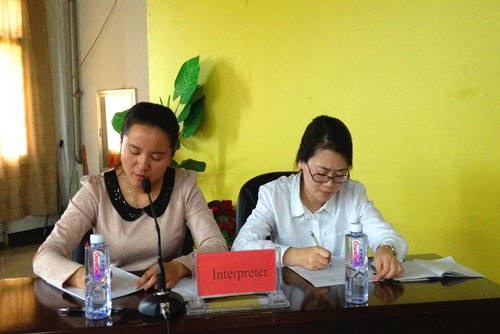 此次口译实践活动由2014级口译专业学生马秀发起并组织,其他三名同学马根蕾、王滋惠和雷霞分别担任主持人和口译员。学院在学生自发组织的实践活动中给予了大力支持,提供了前期宣传、接待、场地、摄像支持。全体师生观摩了此次活动,口译授课教师田莎、孔明对学生的现场翻译做了全程记录并予以点评。