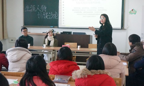 在本院311教室举行生涯人物访谈沙龙。随着我国教育事业的发展,越来越多高质量的大学毕业生涌入就业市场,即将毕业的大学生们因而压力倍增。本次生涯人物访谈沙龙特针对目前严峻的就业形势,给予同学们启发与指导。参加本次活动的有学生工作办公室郑轶老师、。往届毕业生张晗和田瑾以及来自学院各班级的同学们。