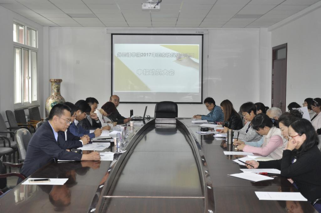 其次,科技处李学斌处长作动员讲话。李处长在讲话中指出,在学校“十三五”开局之年,以及国家建设 “双一流”大学的背景下,做好国家社科基金项目申报工作,推动学院科研工作更高、更快发展,对于促进学校科技工作改革有重要意义。在肯定外国学院科研工作成绩的同时,李处长通过几组数据对比,指出了鸭奈飞