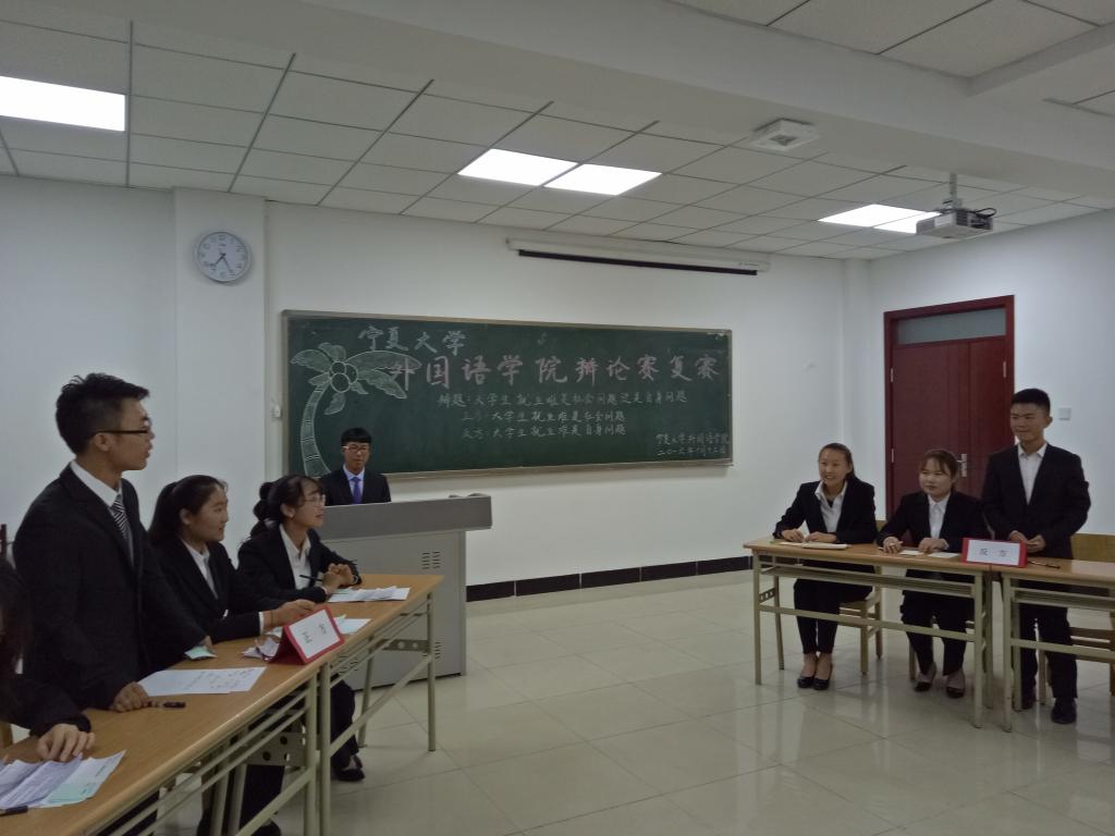 本次辩论赛以“大学生就业难是社会问题还是自身问题”为辩题。正方持“大学生就业难是社会问题”的论点,反方持“大学生就业难是自身问题”的论点。本次辩论分为六个阶段,分别是:自我介绍、开篇陈词、攻辩环节、攻辩小节、自由辩论、总结陈词。首先,正方辩手胸有成竹,气场强大,以有力的数据强调大学生就业难是社会问题。随后,反方辩手也不甘示弱,找对方的漏洞进而重申己方论点。在自由辩论环节,现场气氛紧张热烈,双方辩手你来我往、侃侃而谈,场下观众激情澎湃、掌声连连响起。参赛队伍乘风破浪,现场气氛迅速升温,精彩不停,掌声不断。