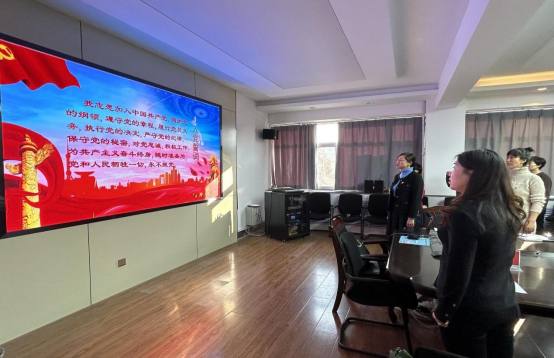 首先,学院党总支书记朱海燕介绍了本次活动的背景和意义。然后,在朱海燕同志的带领下,参加主题党日活动的全体党员重温了入党誓词。