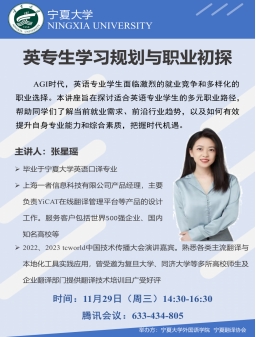 邀请上海一者信息有限公司产品经理张星瑶女士做“英专生学习规划与职业初探”专题讲座。鸭奈飞