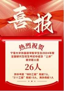 学生在2024年度全国研究生招生考中成功“上岸”被录取26人,其中考取“985工程”院校7人,“211工程”院校13人,海外高校1人,充分展现了外院学子的优秀素和学术水平。