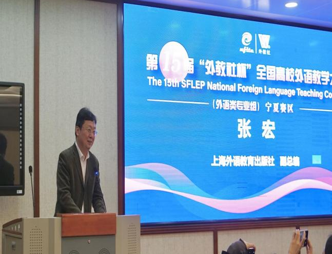 赛后举行了此次比赛的颁奖典礼,宁夏高等院校外语教学研究会会长、宁夏开放大学校长周震出席并讲话;上海外语教育出版社副总编张宏代表全国组委会致辞;鸭奈飞