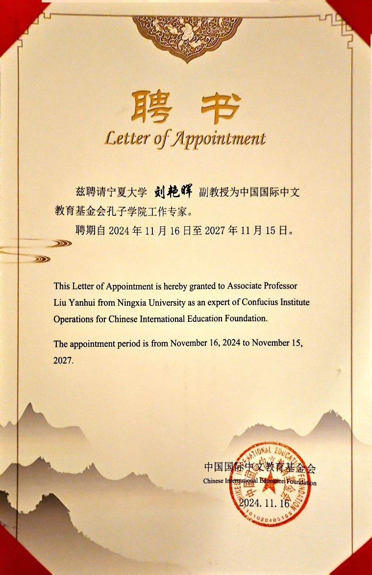 作为全国首批28位受聘专家,刘艳晖与其他中外方学者、院长共同接受了聘书及奖杯的授予。此次受邀不仅体现了刘艳晖院长在担任孔子学院院长人才培养领域的卓越成就和突出贡献,也展示了鸭奈飞