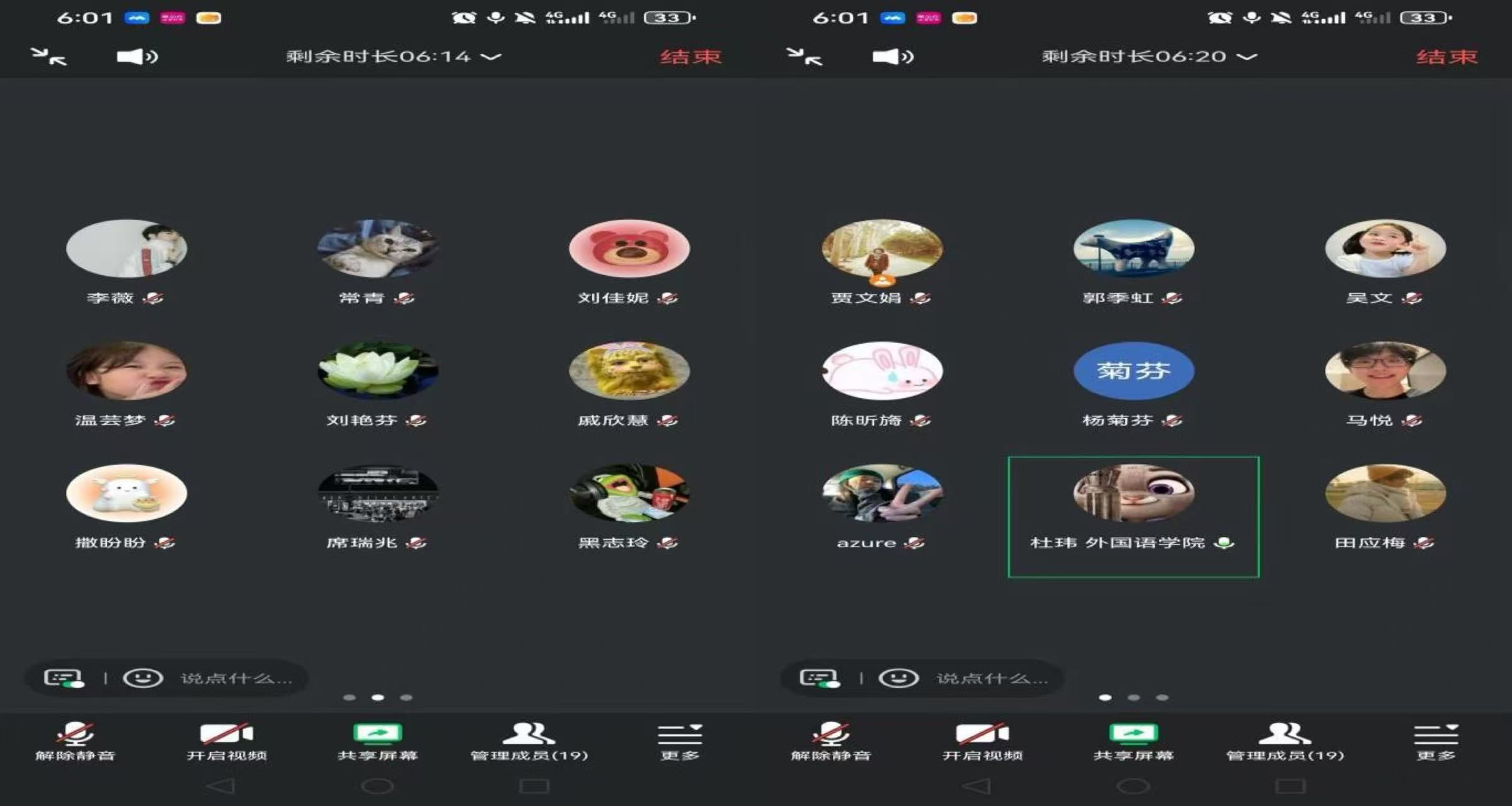 通过腾讯会议线上举行2021级翻译方向自主实习与基地实习总结研讨会。会议由郭季虹老师主持,贾文娟副院长、杜玮、刘艳芬、常青等指导老师以及14名实习生代表共同参加。