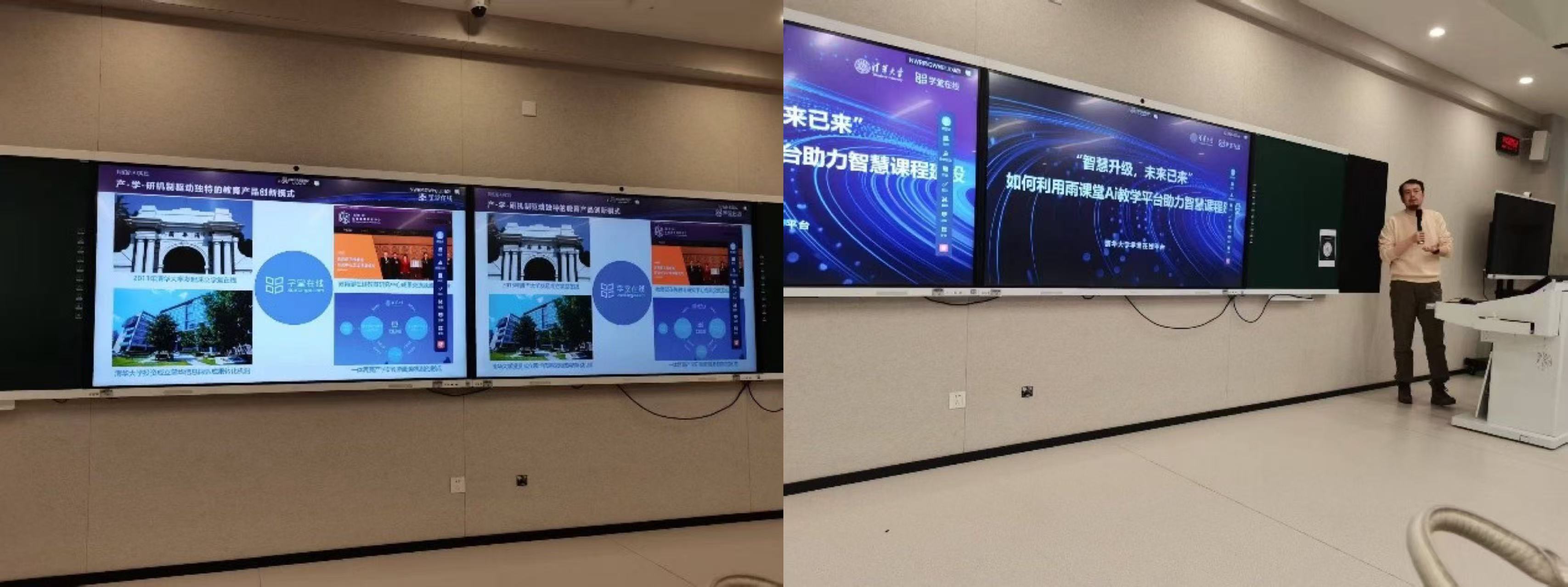 教师在笃行楼524参加了“如何利用雨课堂AI教学平台助力课程建设”的培训。本次活动通过清华大学学堂在线平台展示了AI教学平台的应用及其在教育中的转型作用。