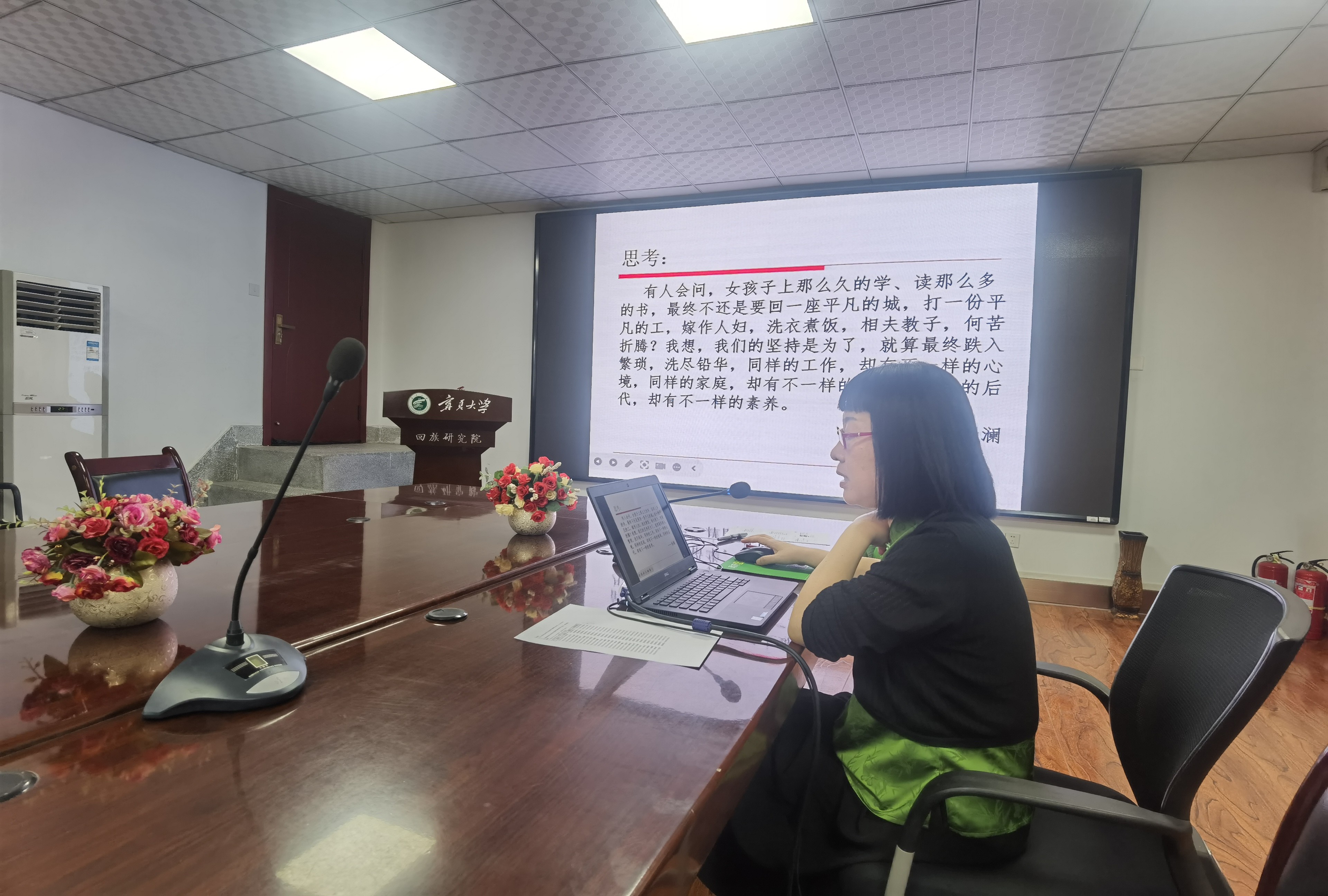 为助力学生明晰学业规划,提升考研保研竞争力,5月22日下午,2024级英语师范一班在逸夫楼307会议室开展了题为“让生命开出更美的花”的主题班会。会议由班主任文莉老师主持,学院副院长胡笑瑛教授担任主讲嘉宾,2024级英语师范一班全体同学参加会议。