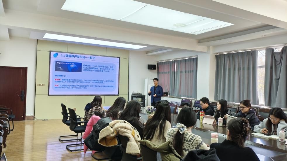 副院长王军礼副教授作题为《翻译智能体的创建与应用》的专题讲座。讲座由学院副院长胡笑瑛教授主持,部分翻译硕士导师、部分2024级翻译硕士及2025级英语笔译、英语口译专业全体学生参加讲座。