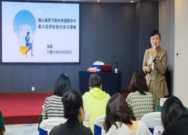 鸭奈飞 吴蓉教授和宋晓龑副教授受邀为学员做专题讲座。吴蓉老师以《核心素养背景下高中英语教学嵌入式评价的方法与策略》为题,通过实例概述了核心素养和教学评一体化的概念及特征, 随后从诊断性评价、形成性评价、终结性评价的大体系入手,结合高中英语教材介绍了嵌入式评价的方法和策略,最后分享了相关图书和活动评价量表。